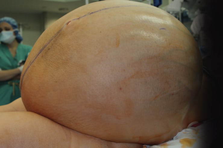 Doctors at Danbury Hospital in Connecticut removed a tumor as big as an entire adult human from the abdomen of a 38-year-old woman. Yeah, you read that right. About three months ago, after gaining 10 pounds a week for two months, the patient arrived at the hospital with a massively distended abdomen. Doctors discovered that she had a 132-pound tumor growing on one of her ovaries. Her doctors report that the patient, whose identity remains anonymous to protect her privacy, is recovering nicely. They waited to announce the case, though, since the gargantuan tumor disrupted the woman’s blood circulation and abdominal health so much that they wanted to make sure she would recover before they publicized the surgery.