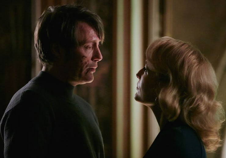 You’ve got to hand it to any show in which one of the main characters using a bone saw to open the other main character’s head is not the most significant plot point in an episode. Hannibal has gotten so outrageous and violent that, in the space of one 43-minute span, we’ve now got a shooting, a character getting addicted to opiates, a kaleidoscopic lesbian sex scene, a baby plot, a sort-of dinner party, some at-home surgery, and then, after all of that, a mighty big reveal. It would seem the showrunners have taken David Byrne’s advice and stopped making sense.