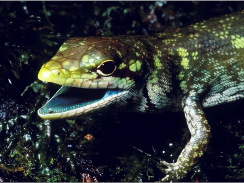 In a study published Wednesday, scientists explain that the lizards’ blood — as well as their muscles, bones, and tongues — are bright green because they contain high levels of biliverdin. This green bile pigment is produced in the process of breaking down the oxygen-transporting molecule hemoglobin into the bile pigment bilirubin. In humans, it’s only found at very low levels. At its most low key, biliverdin is responsible for the green color in human bruises; when it’s found in excess, it can cause jaundice. These lizards, meanwhile, are squirming around with biliverdin levels 40 times higher than the lethal concentration that would knock out a human.