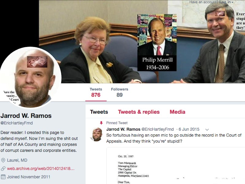 In a now-suspended Twitter account seemingly belonging to Ramos, he repeatedly, angrily tweeted about the Gazette, Eric Hartley, the writer of the article about him, and Judge Charles Moylan, who ruled against his defamation case. Shortly before he attacked The Gazette, he tweeted “Fuck you, leave me along @judgemoylanfrnd.”