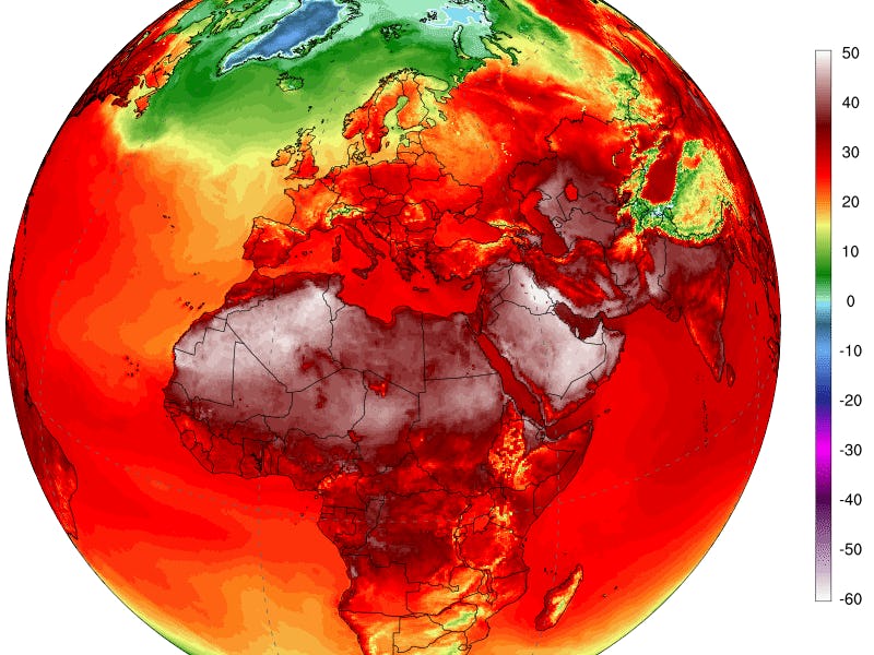 Cities across the Northern Hemisphere witnessed exceptionally high heat this week, with records breaking in North America, Europe, the Middle East, and Western Asia. Besides the long-term effects such temperatures may have on climate change, many of these weather milestones caused immediate hazards. And, according to the most recent weather data from the University of Maine’s Climate Reanalyzer, the high temperatures are not subsiding.