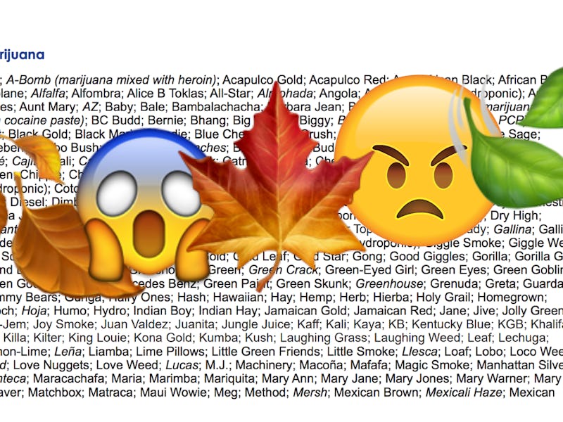 This is where the conversation sort of went off the rails. Inverse originally planned to ask the DEA if they would consider, or had already pondered, adding emojis to the list of weed slang. After all, emojis are crucial to online interaction, from Facebook reactions to buying and selling drugs like weed on apps like Tinder and Snapchat.