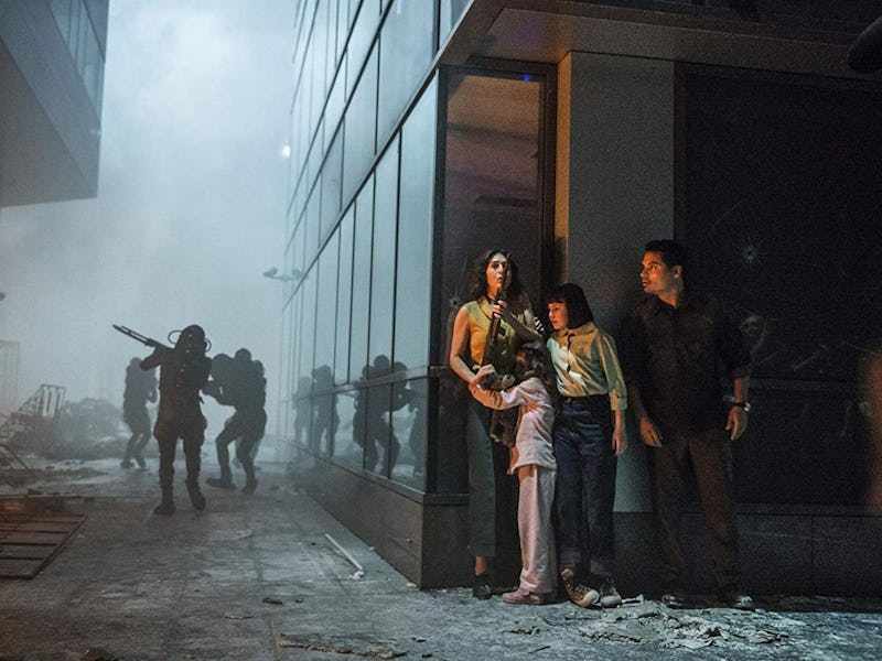 If you need a quick primer, here’s the basic plot of Extinction. In a near-distant future, humans invent artificially intelligent robots called Synthetics that look identical to humans. Initially, they’re used for menial labor, and in flashbacks with see both Peña and Lizzy Caplan’s characters working as cleaners in some sort of office.