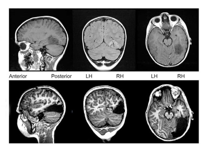 In the case study, doctors explain how, starting at age 4, the boy suffered from debilitating epileptic seizures. They soon discovered that the culprit was a slow-growing tumor in his occipital and temporal lobes in the right hemisphere of his brain, but he didn’t respond to any treatments to relieve him of his seizures. So nine months after his sixth birthday, doctors removed one-third of the right hemisphere of his brain, including some of his temporal lobe and his entire occipital lobe. While the occipital lobe is charged with visual processing, the temporal lobe also handles some degree of processing visual and auditory information, including, notably, facial recognition.