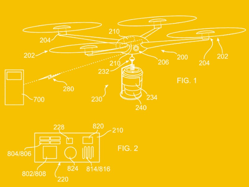 “A coffee drone,” the patent suggests, “might also take advantage of the social psychological effects by first providing coffee to a person who is popular, famous, or otherwise has a high social status.”