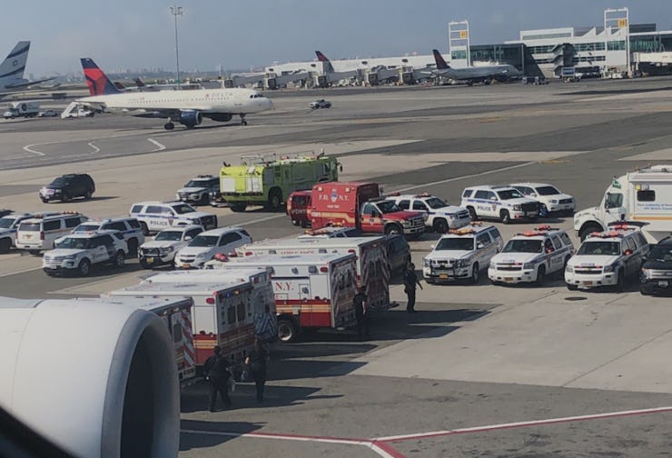 Meanwhile, passengers inside the plane were only partially informed of what was going on. In a series of tweets from inside the plane, Coben posted photos of emergency vehicles lined up on the tarmac. “All we have been told is that some passengers have fallen ill and we should remain in our seats,” he wrote.