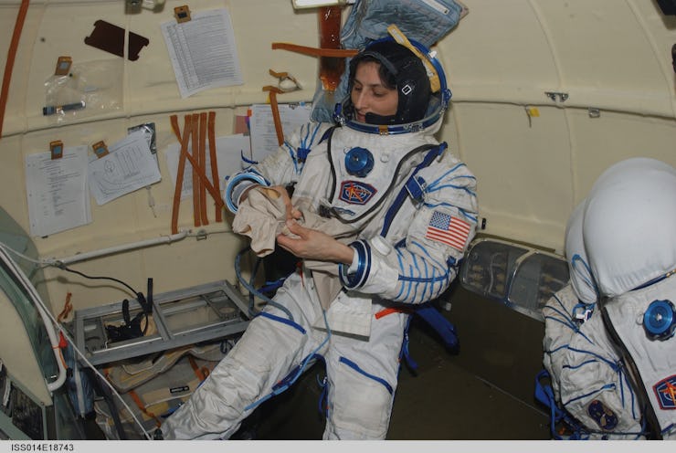 For example, one children’s book about space exploration shows what’s involved in a spacewalk. Along with pictures of astronauts in their white padded spacesuits, we are told: “Without a spacesuit an astronaut’s blood would boil and his body would blow apart.” The use of male pronouns suggests the person inside the spacesuits is male.