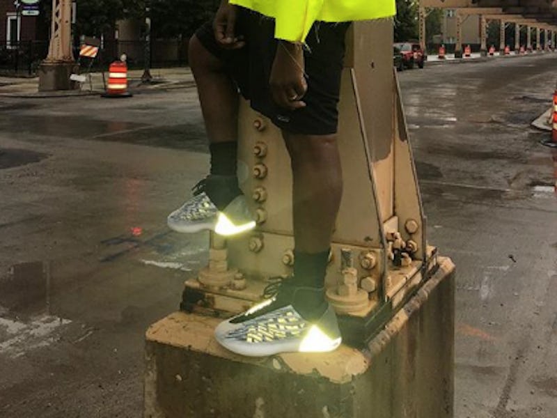 Kanye’s Instagram reveals that the basketball Yeezys sport a glimmering heel-panel that basically lights up like a crossing guard’s reflective vest. After ‘Ye leaked the photos of the shoes, industry sources told ESPN that this “3M reflective panel” could be so distracting to players on the court and viewers at home that it could elicit a league-wide ban.