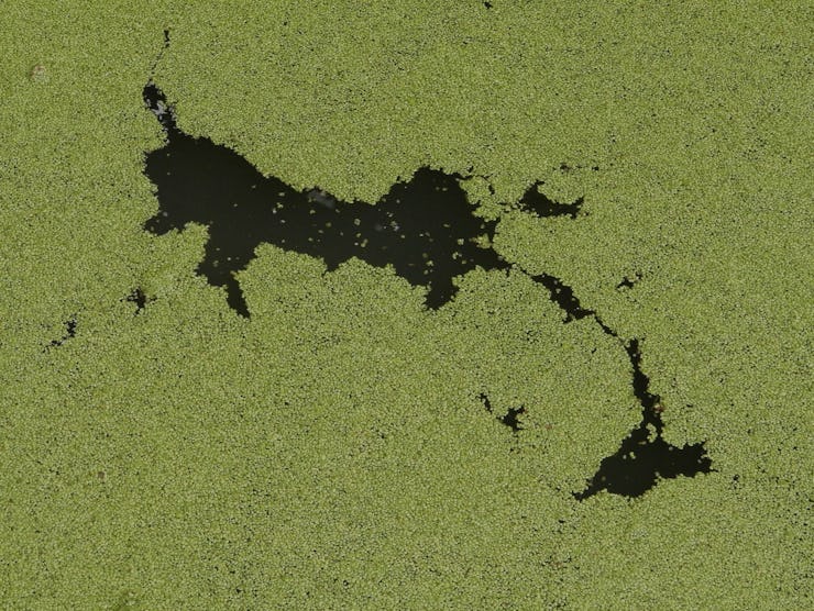 Algae is clearly visible in this satellite image of southwestern Lake Okeechobee, taken July 15, 2018.