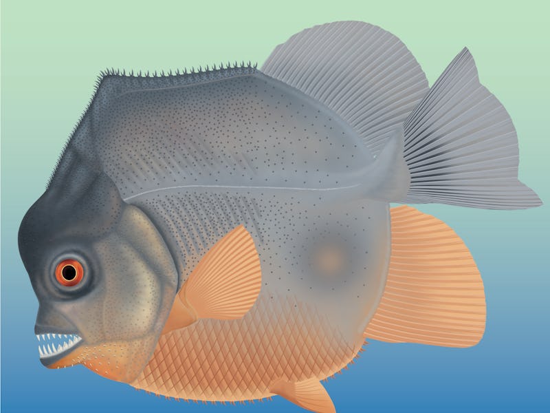 The scientists concluded that this oldest known flesh-eating fish shares a remarkable convergent evolution with modern piranhas — even though today the latter is found in freshwater, and the Piranhamesodon pinnatomus did not. While living piranhas do sometimes bite and tear mouthfuls of flesh, they sometimes feed on fish fins too.