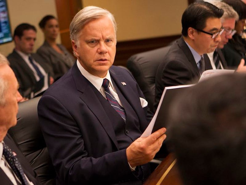 And the reason why is the military industrial complex, the feckless president, and the Secretary of Defense, who is played as the most basic white dickhead imaginable. The president wants to go war and Larson wants to stop him — even after the country’s leader tries to nuke Tel Aviv. Larson’s seemingly naive belief in back channel resolution on non-military intervention is charming, but kind of hard to buy. It’s one thing to be a dove and another thing to ignore the guy taking potshots at you. Still, the scene in which Larson punches the president is great (we’ve all wanted to do it for one reason or another), and he’ll be more interesting as a diplomatic lone wolf.