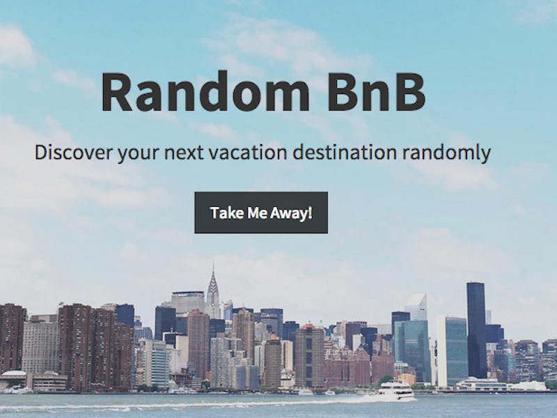 Random BnB curates only the world’s exotic, best-rated Airbnb listings, with one generated at random for you to book, which is actually a pretty fun idea. The site, which cautions it has no actual affiliation with Airbnb, says it was created by Ira Willey “while bored at YYJ airport.”