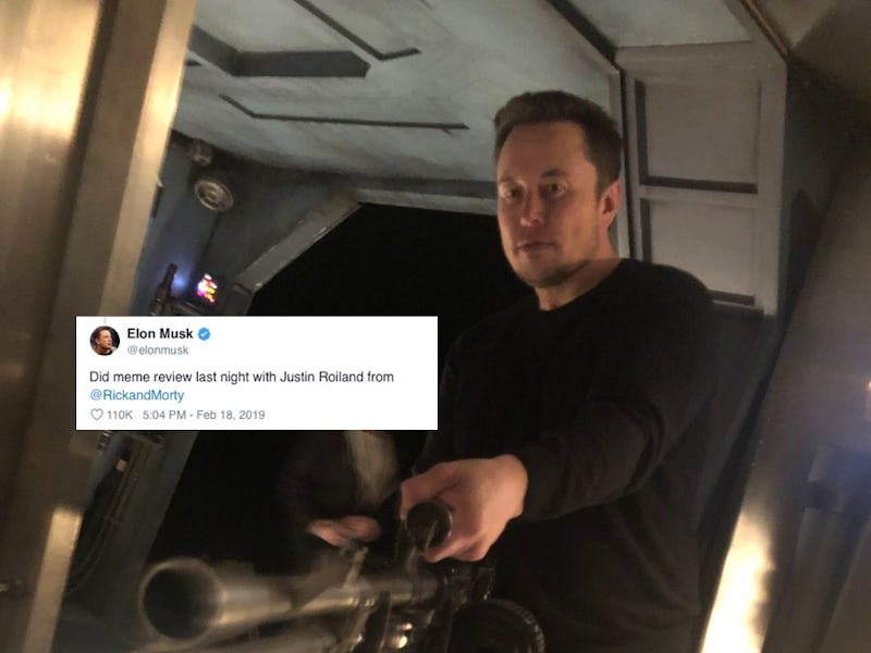 On Monday, Elon Musk posted a bizarre tweet that reads, “Did meme review last night with Justin Roiland from @RickandMorty.” It’s connected to his late January tweet that featured a photo of himself wielding what’s either a large flamethrower or some kind of really big gun captioned “Host meme review?”