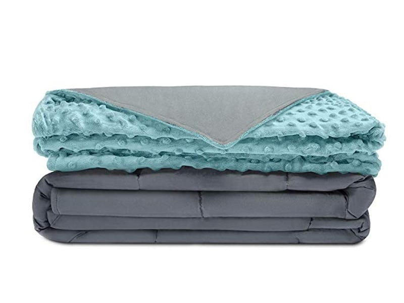 Our next tier weighted blanket can also be found on Amazon. If you’re looking for a weighted blanket that has a variety of removable duvet cover colors to choose from, then this would be the option for you. The 15-pound option costs just under $125, but this particular blanket also has weight classes ranging from 7 to 30 pounds, making the benefits of weighted blankets more accessible to a wider range of consumers. Not sure which size is right for you? Quility has a handy guide available on their listing to help consumers choose.