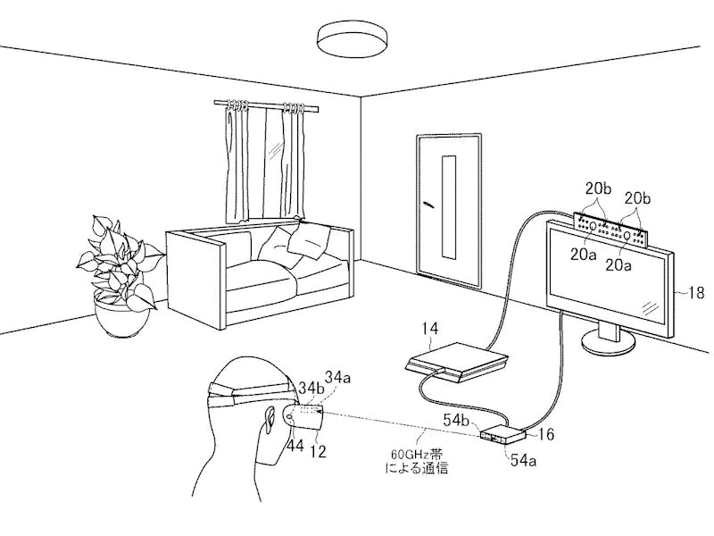 The blueprints — initially submitted more than two years ago — depict a console attachment that connects the headset to the console, as well as a TV-mounted PS Camera that is required to use PSVR. The unnamed attachment would transfer data from the console and camera to the headset using a 60GHz frequency. These millimeter waves have been successfully tested and can wirelessly deliver massive amounts of data at blazing speeds. That could be exactly what is needed to finally cut the cords that continue to be a mainstay of in-house VR sets.