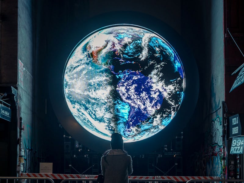 “I had done a lecture on public art in Silicon Valley and was approached by blu after my talk, who asked if I had a project that I had not been able to realize yet and needed help,” Errazuriz explained to Inverse in an email. “I told them about my dream to stream direct footage of Earth from space to offer everyone who sees it the overview effect that astronauts speak about.” The work was produced as part of the “Pledge World by blu” campaign, sort of a Make-a-Wish Foundation for adults, minus the critical illnesses, that launched in February.