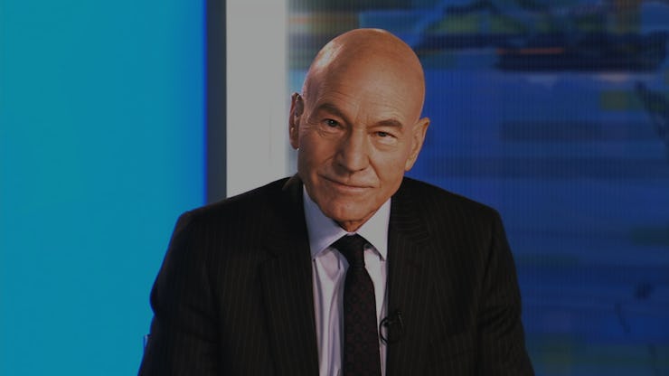 The opening image of the first episode of Blunt Talk is the back of Patrick Stewart’s head. Yes, you know the bald orb well; it has shone through Star Trek: The Next Generation and a bunch of X-Men flicks. Stewart’s character, Walter Blunt, is seated at a bar, getting drunk (as he does with regularity). Blunt is a renowned British newsman whose program moved Stateside five years ago and has hit the skids. Down on his luck, he turns to booze, marijuana chocolates, and even blowing coke off a picture of himself and his assistant, Harry, fighting in the Falklands War. Sometimes these coping mechanisms don’t go that well — actually, they never do. Blunt staggers from the first scene into his car only to find himself suckling on the breasts of a transsexual prostitute while surrounded by cops. And so it begins.