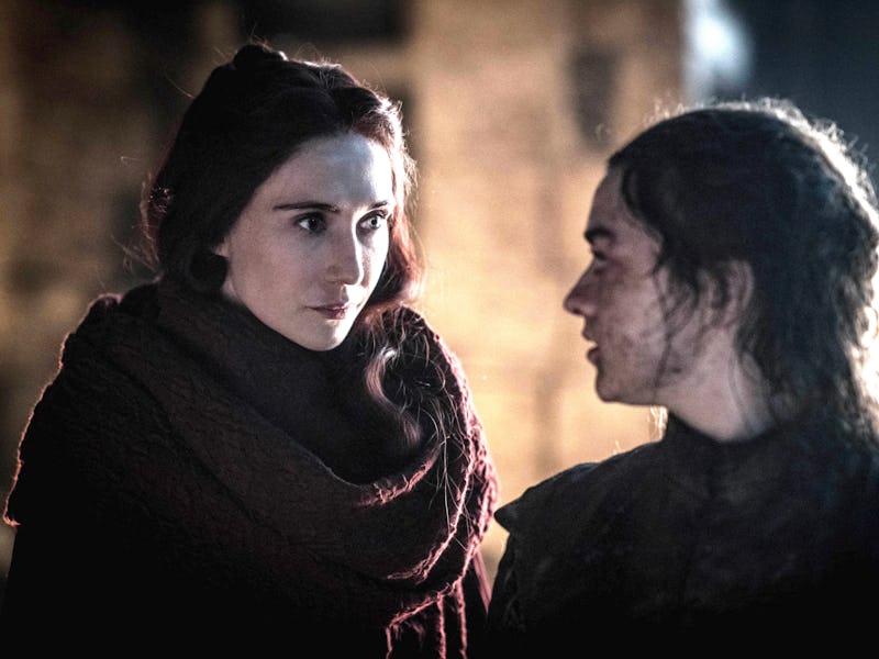 Additionally, in Game of Thrones Season 8, Episode 3, Melisandre gives Arya some cryptic advice. We may not hear the words “Prince That Was Promised,” but the Red Witch essentially gives Arya the motivation she needs to kill the Night King. So that’s gotta count for something, right?