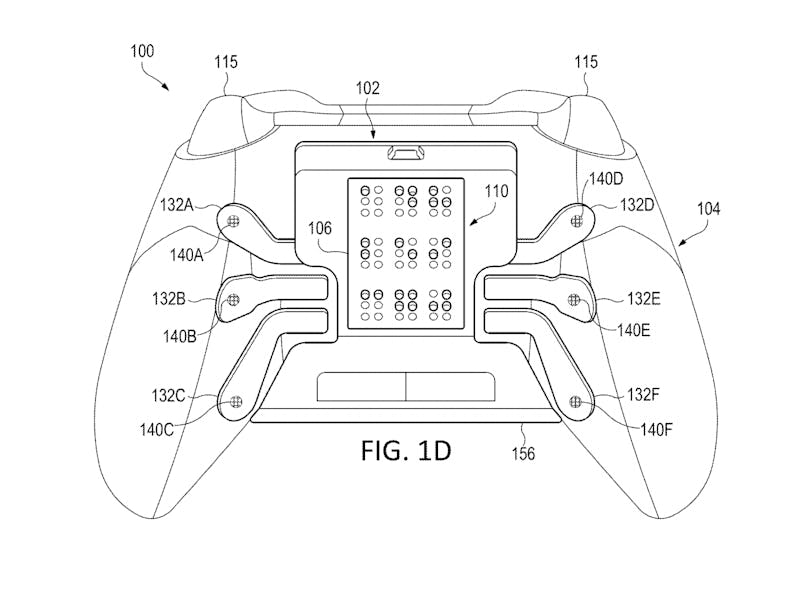 The functionality has been described in other patent applications, including one filed to the World Intellectual Property Organization on May 2, which suggests it’s more than just an experiment. Both patents deal with designs for a controller that integrates a braille panel into an upgraded version of the $150 Xbox Elite Wireless Controller. On its face, it looks like a run-of-the-mill Xbox controller, but on its back it houses an array of constantly-changing braille characters that allows visually-impaired players to read text that appears on screen. Surrounding the braille matrix are six paddles meant for game inputs and texting, which are easily accessed with users’ fingers that rest on the back of the device.