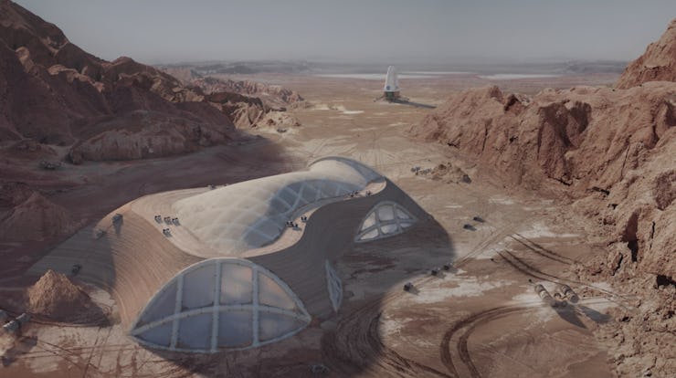The above designs were created by the Hassell Studio, who designed its 3D-printed habitats as part of a $3.15 million NASA and Bradley University challenge last year. The flat humps are designed to use existing Martian resources to build a habitable space that also offers a place for the explorers to socialize — a feature that may be crucial for helping these early Martians avoid crippling cabin fever.
