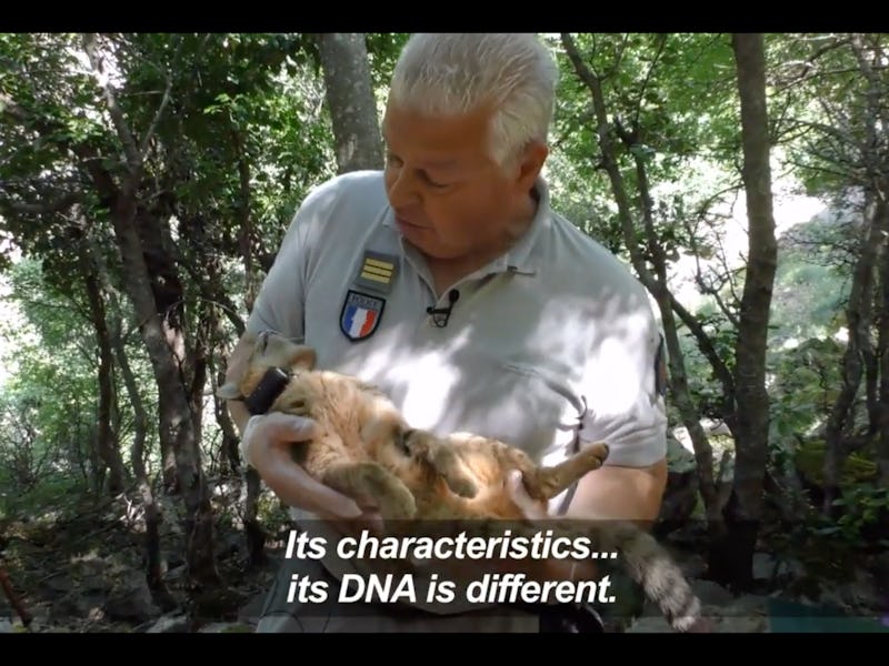 In 2008, that started to change when a cat-fox got caught in a chicken coop by accident. In an effort to figure out just what kind of animal was roaming the mountainous forests on Corsica, wildlife officials started placing scent traps that would encourage the cats to rub up against them. In 2012, one of these devices — a simple contraption involving a wooden post and a scented attractant — trapped enough fur from a cat-fox to yield a DNA sample. In 2016, researchers captured their first live cat-fox, and in the time since, they’ve captured, examined, and released 12 of the 16 that have been spotted in the area.