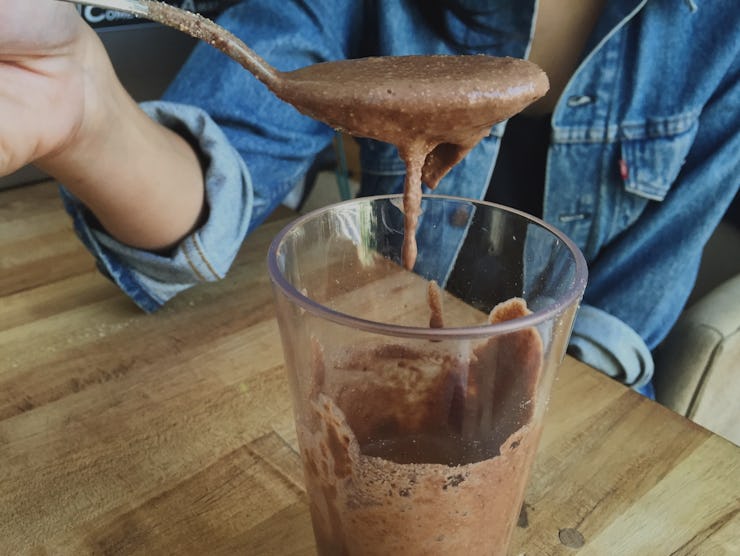 My daily ration of Bachelorette Chow fit into a Chinese take-out tub, which I brought into the Inverse office the next morning, mixing a third of it with water to a pudding-like consistency. As a breakfast food, it wasn’t half-bad — like a semisolid Clif Bar with a salty, corny aftertaste. Plus, after just three spoonfuls, I was feeling pretty full. Shit was dense. But after about 15 minutes, shit became too dense.