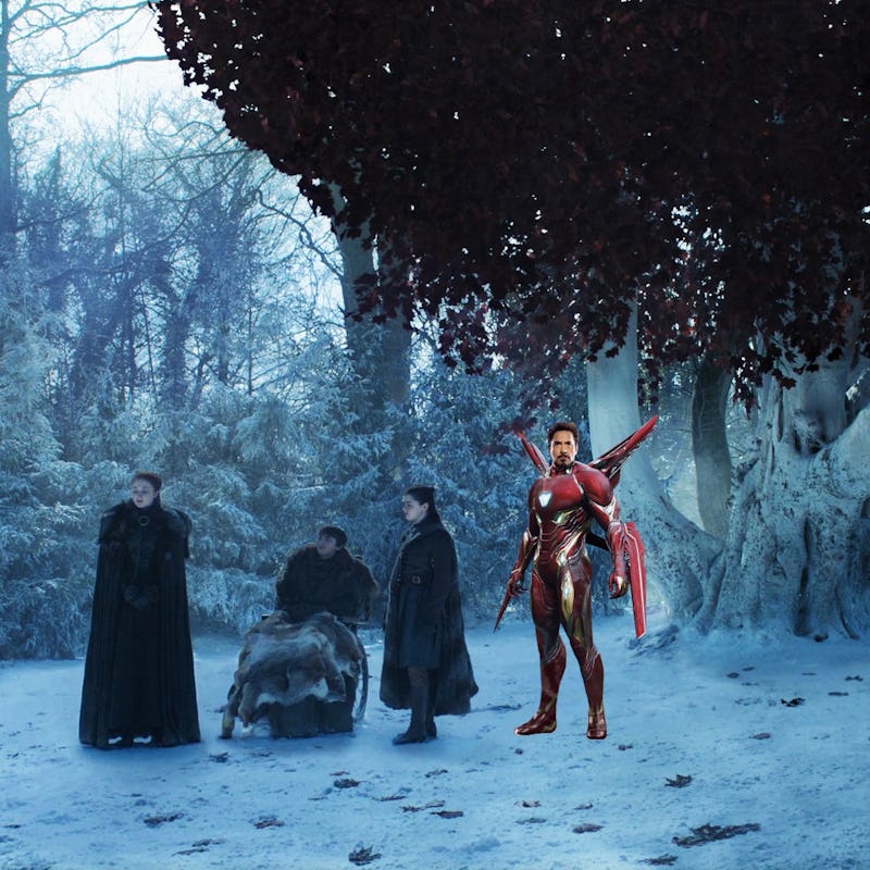 Would Tony Stark also be a Stark in Westeros? Is Melisandre the Red Witch like Scarlet Witch? Where does humble Hodor fit in all of this? We’re calling it Endgame of Thrones.