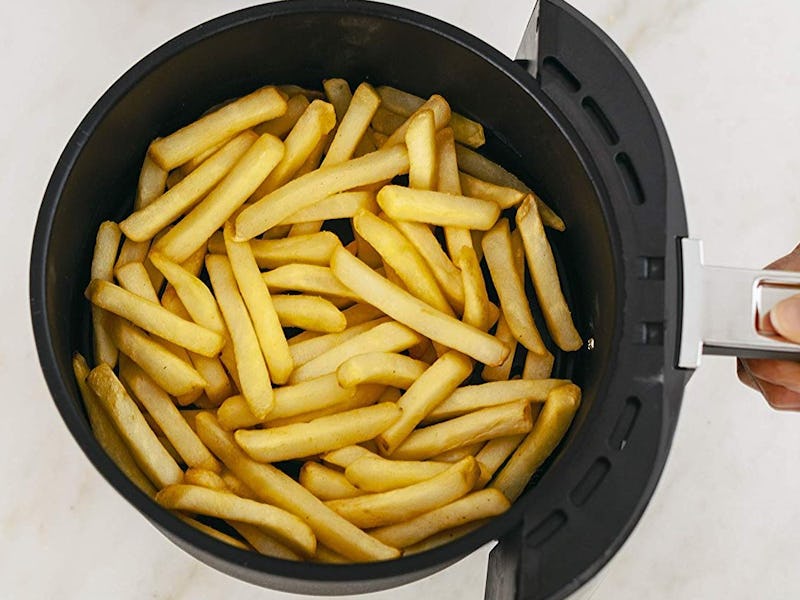 Why We Chose It The Cosori air fryer has a rating of 4.7 stars with more than 1,600 reviews. This air fryer is all about sensible design, with its space-efficient square shape. It’s outfitted with a square basket that has more usable space than round baskets with the same 5.8-quart capacity. The control panel is angled so it’s easier to read and use without bending over. The air fryer has 11 presets and also has a built-in reminder to shake the baskets, a keep-warm function, and easy-to-adjust timer and temperature setting.
