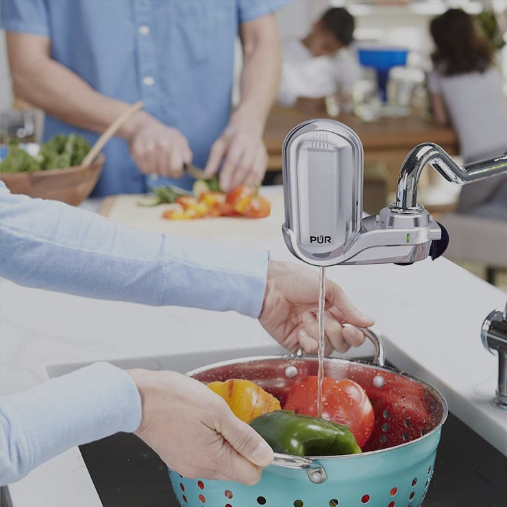 This sleek and shiny faucet water filter will look great in any kitchen, but before you get too invested in it, it doesn’t necessarily fit all faucet types (you’ll have to read up on if you faucet fits the bill). But if your faucet can handle this design, the PUR faucet water filter system is an effective one. PUR is certified to filter and reduce over 70 contaminants, including chlorine and 99 percent of lead. It also has an LED indicator to let you know that your filter itself needs a change. Don’t believe us? over 3,600 Amazon reviewers gave this faucet a nearly perfect five star rating.