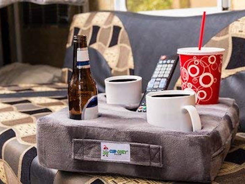 This pillow might seem like a frivolous purchase, but if you’re limited on table space, this cozy pillow is exactly what you need. People can safely leave their drinks on the couch or the floor since they are tucked into nifty cup holders. Plus, it has slots for every kind of drink, from coffee to Coca-Cola.