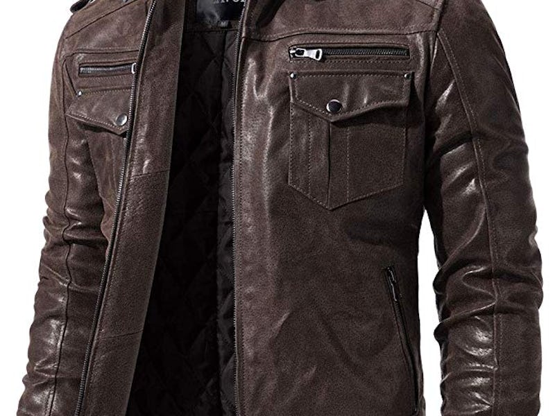 The Retro biker jacket by Flavor is genuine leather with 100% cotton filling. The Flavor retro jacket has tons of pockets—six, to be exact—so you never have to worry about forgetting your stuff. The zippered closure and stand collar also protect you from the elements.