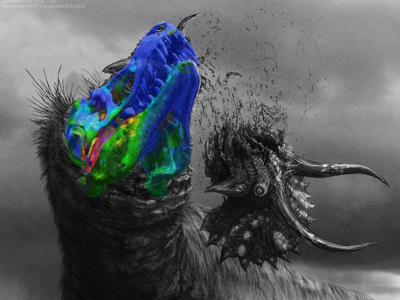 This question may not immediately come to mind for someone with a brain that’s focused on more important matters, but once I started thinking about it, it became extremely difficult to stop wondering. Fortunately, I’m not alone: A team of scientists wondered the exact same thing, and in research released this summer in The Anatomical Record, they explained how the anatomy of T. rex’s head made it possible for the animal to bite down with over 12,000 pounds of force without fear of hurting its skull.