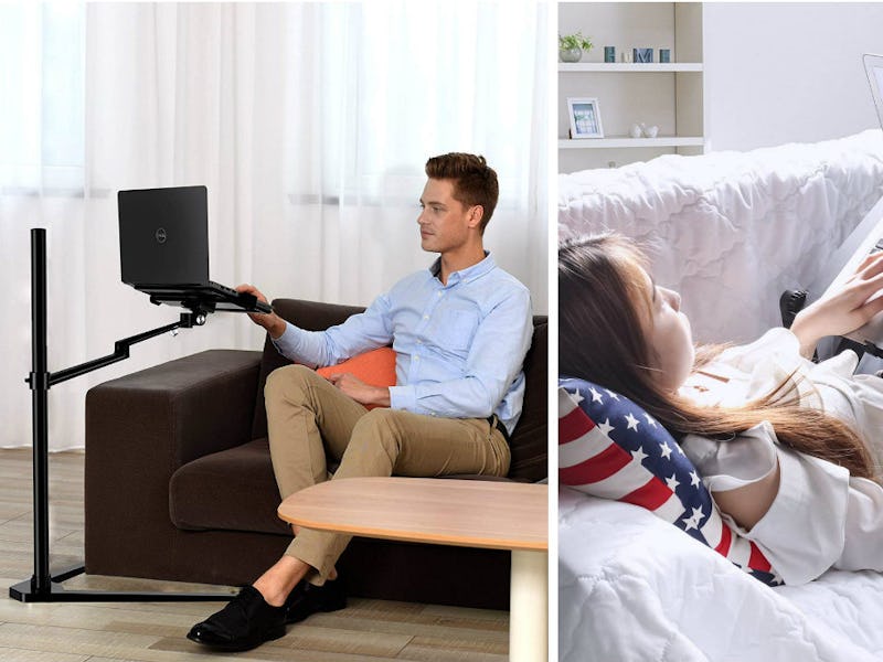 The Lamicall Laptop Riser has a sleek design that can fit in with any modern, minimalistic desk. Suited for laptops that are up to 17 inches, this stand really only works best if you have a wireless keyboard to pair it with. And if you do have one to pair, this stand came recommended at a perfect 5-star rating from over 800 happy customers. over The stand itself raises the screen to eye-level, straightening out your posture. The rod connected to the base also swivels, making your laptop ergonomically accessible from any angle. And don’t worry abut your laptop slipping off—it has rubber pads to keep it secure and cooling vents to make sure your laptop doesn’t overheat on the close surface. As an added bonus? It’s also a pretty nifty way to prop up the laptop for Netflix binges, too.