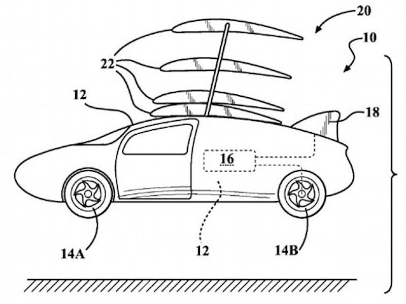 “Aerocars or roadable aircraft are defined as vehicles that may be driven on roads as well as take off, fly, and land as aircraft,” the patent explains. “Vehicles that demonstrate such capability provide operators with freedom, comfort, and the ability to arrive quickly to a destination as mobility becomes three-dimensional yet remains private and personal.”