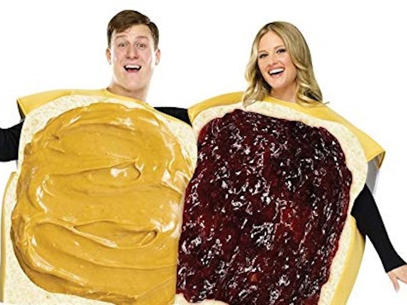 Why We Picked It. Some people just go together like peanut butter and jelly, and these costumes make it official. Yes, the total price is more than 20 bucks, but it’s less than $15 apiece, so you get it. The Peanut Butter and Jelly set comes with two foam tunics, one with the peanut better design and the other with the jelly printed on the front. These roomy costumes keep your hands, legs, and face free so you can enjoy the party.