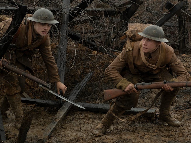 1917 looks a lot like a war movie, and not just because it’s set smack dab in the middle of World War I. The upcoming film from Sam Mendes, which released a new trailer on Thursday at New York Comic Con, features an iconic shot of one of its leads running through an epic battle scene as bombs explode and British soldiers keel over. It’s also got plenty of somber generals (played by the likes of Benedict Cumberbatch and Colin Firth) looking extremely dour. But despite all those trappings of a classic war movie, Mendes tells Inverse that 1917, which was filmed and edited to look like one continuous 2-hour shot, is actually more of a thriller.