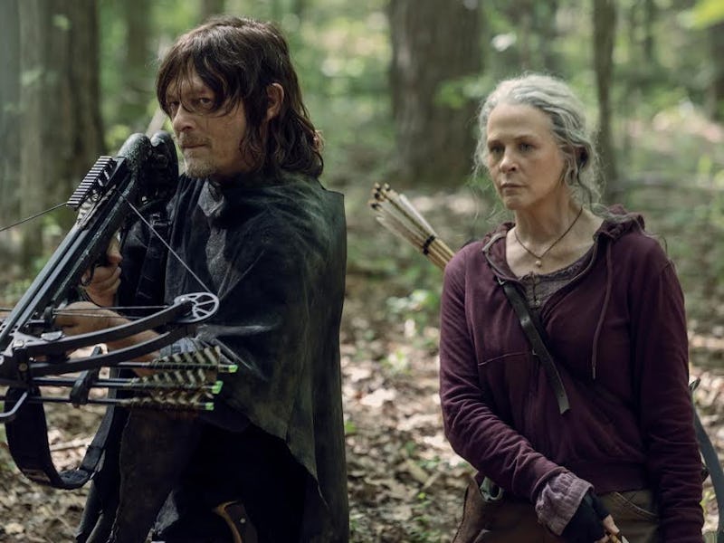 That same day, Carol (Melissa McBride) reunites with Daryl. She’s been living a life at sea since Season 9 came to an end. It’s a distinct lifestyle change, to be sure. But Dixon wants her back on dry land with them. The besties have a moment in the woods, hunting walkers like old times and sharing dreams of running off together to New Mexico where they could knit friendship bracelets. But now, deep in the fiery maw of a mysterious satellite crash, reality smacks them all in the face.