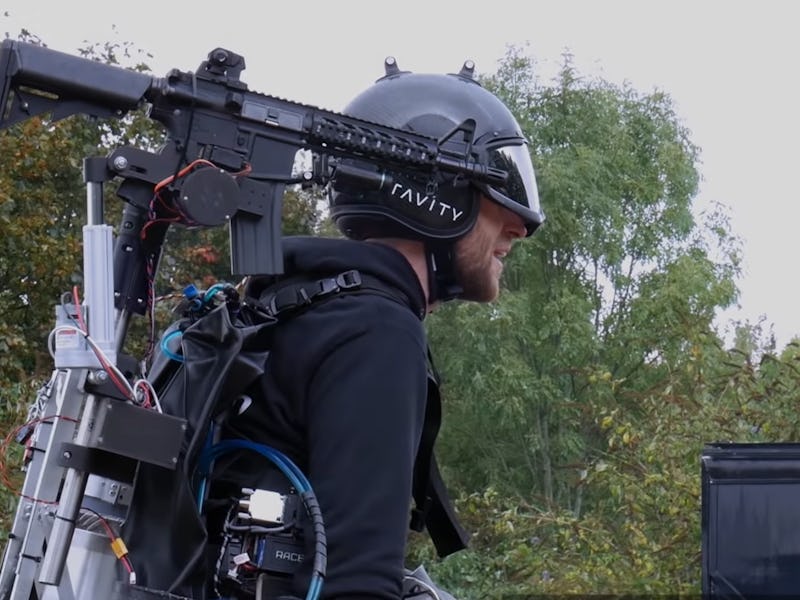 Bruton has helped create a jetpack that has a turret on it with a surprising feature: It also in the direction you’re looking. It’s both an interesting application of engineering and a terrifying piece of high-speed killing machinery.