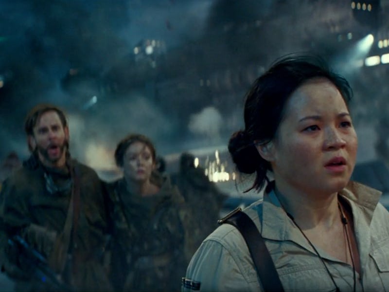 Dominic Monaghan (back, center), beside Billie Lourd, in the trailer for 'Star Wars: The Rise of Skywalker.'