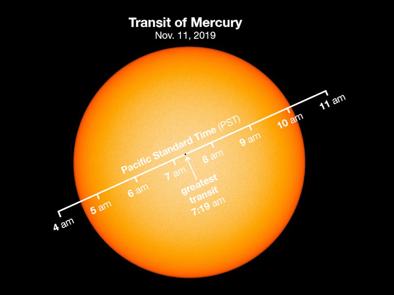 The reason for the excitement is because this is a transit of Mercury. A transit occurs when the Earth, Mercury, and the Sun are all perfectly lined up with one another — and that only happens a handful of times every century. If all three aren’t in line, Mercury actually looks like it is traveling either above or below the Sun to our Earth-bound eyes.
