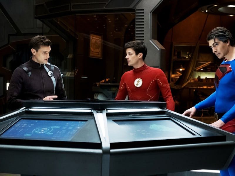 The Flash (Grant Gustin), Pariah (Tom Cavanagh), Elongated Man (Hartley Sawyer), and Superman (Brandon Routh) appear in "Crisis on Infinite Earths."