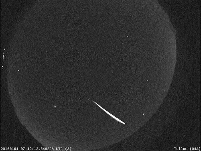 A Quadrantid meteor captured by a camera at NASA's Marshall Space Flight Center.
