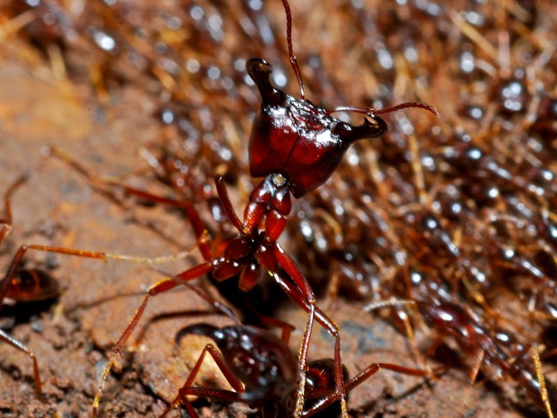 …the aggressive army ant famously rolls through its environment en masse, swarming over the terrain by linking together (and eating creatures unfortunate enough to get in the way). However, as revealed in the October 19 paper, ”Army ants dynamically adjust living bridges in response to a cost–benefit trade-off,” published in the journal Proceedings of the National Academy of Sciences, the ants are well-aware of where these linked crossings are needed, what’s happening around, and when it’s time to break up the links.