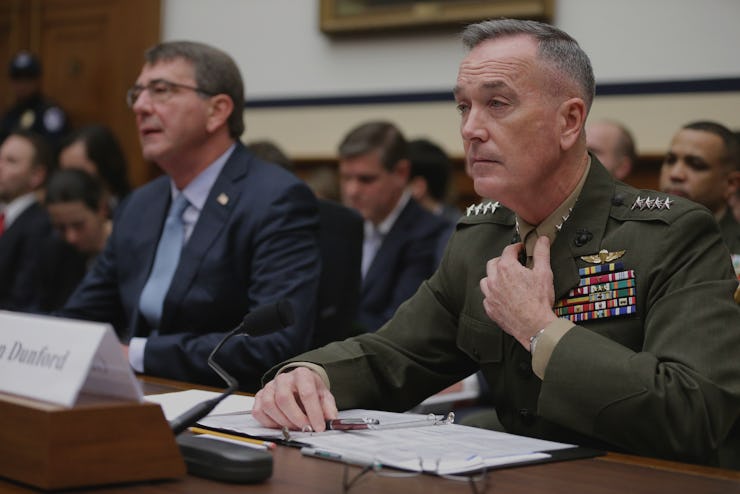 In a telling exchange during a congressional hearing last Tuesday, Virginia Republican Randy Forbes questioned Joseph Dunford, the Chair of the Joint Chiefs of Staff, about the United States’ campaign to destroy ISIS. “You heard the Secretary of Defense say both in writing and verbally that we are at war,” Forbes asked. “Who declared that war?”