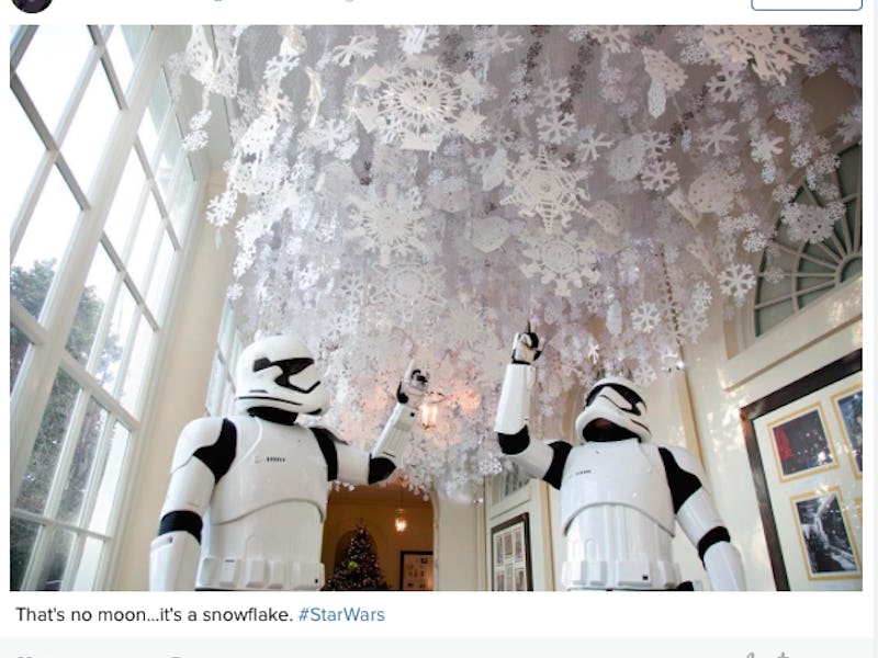 The Obamas were screening Star Wars: The Force Awakens in the White House’s private theater for children of Gold Star survivor — these are people who’ve lost someone in their own immediate families in the Iraq War. However, some of the internet got a little pissy that fictional characters, namely the Stormtroopers, were welcomed to the White House in style.