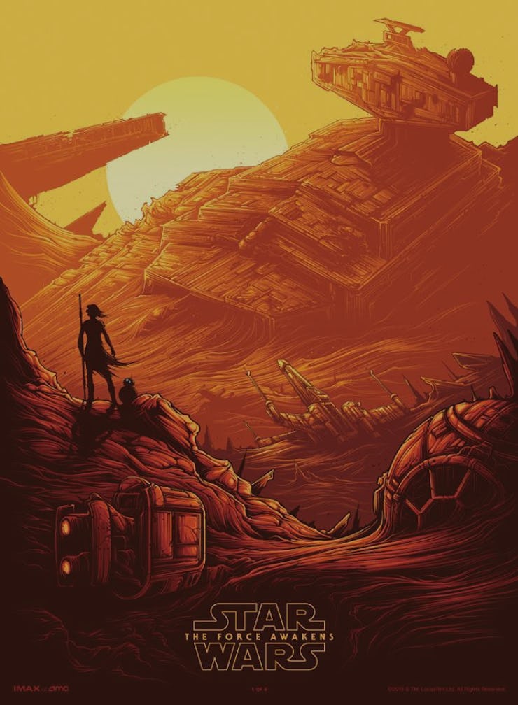 Luckily, The Force Awakens offers itself up as a retreat from the prequels’ CGI sheen. That’s a bit of fiction — there are plenty of computer-animated bits, including a frankly less believable scene where the Millennium Falcon shears out of a pine forest and into the snow — but one, on the whole, the audience could buy. Science fiction proper gets to ask whether or not spacefarers would want to spin up old Beastie Boys albums, or if sophisticated drones make ground troops obsolete a decade from now.