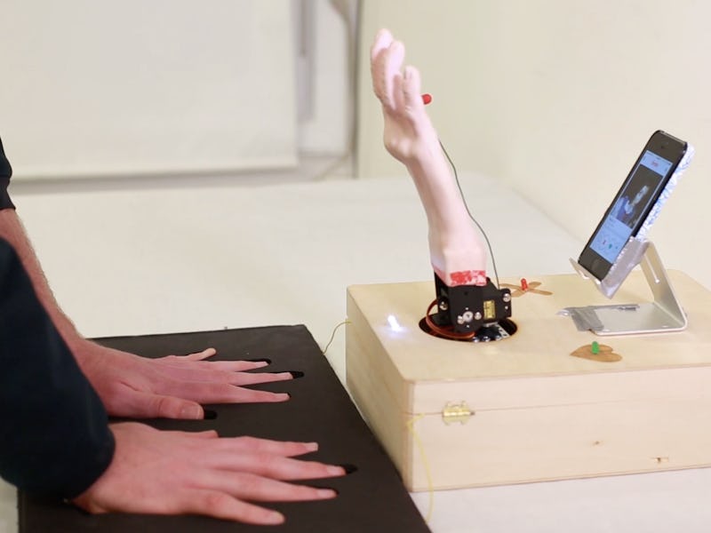 “I bet in two years, this would not be an interesting project because it would just be kind of normal,” He says. “Not in this creepy robot hand form, but allowing the tech to read data from our bodies to do things like this.”