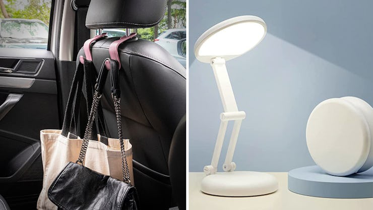 You’ll barely notice these compact headrest hooks in your car when you’re not using them, but they’ll come in handy every time you have a ton of grocery bags or a purse you want to keep off the floor. Each one holds up to 44 pounds, so you know these can handle your oversized travel bag, and the clip-on design makes it easy to change up the placement of these durable hooks.