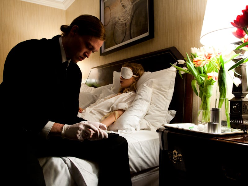 They may be deliberately dehumanized, but the celebrities in Antiviral definitely are people, and their human vulnerability is what allows them to market their illnesses to eager fans. Lucas’ star client is Hannah Geist (Sarah Gadon), a fragile beauty whose value lies entirely in selling off pieces of herself, whether those are the viruses she provides to Lucas or the cloned muscle cells that are grown into cuts of meat for fans to consume. “I don’t understand how this isn’t considered cannibalism,” Syd says to Arvid (Joe Pingue), owner of a celebrity butcher shop and dealer in illicit viruses.