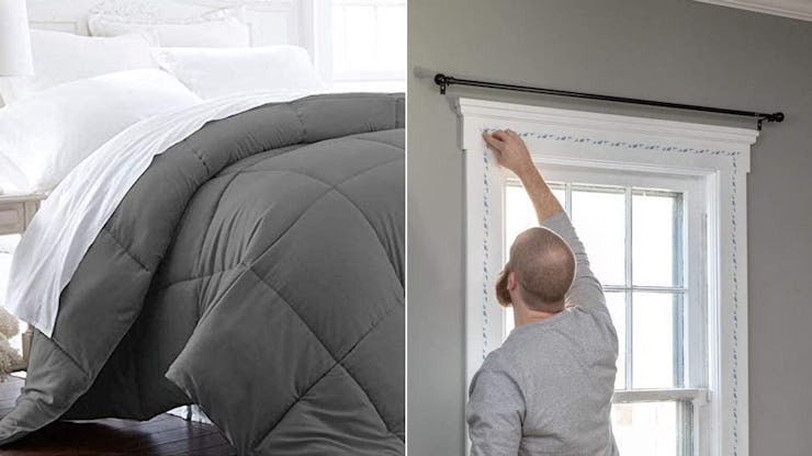 This surprisingly affordable down alternative comforter is the perfect weight to keep you warm and cozy — but not too warm — all year round. The microfiber shell is soft and elegant on its own or can go inside a duvet cover, and the box stitching keeps the synthetic fill from moving around or clumping. There are loops in all four corners to make putting a duvet cover on — and keeping it in place — simple. It comes in three colors.